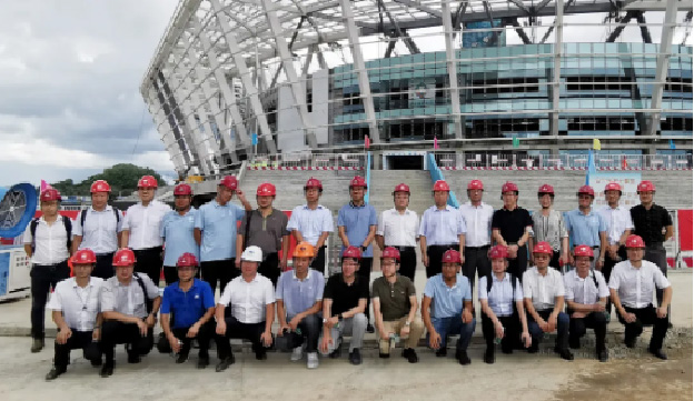 三亚国奥体育产业投资有限公司总经理张威,北京城建六建设集团有限公司副总裁韩建成、李云波、总工程师高文光,中冶钢构有限公司常务副总经理苏洪华、副总工刘明路、设计院院长罗兴隆;中冶建研院总经理助理常正非、技术总监李荣等30余人参加考察交流。